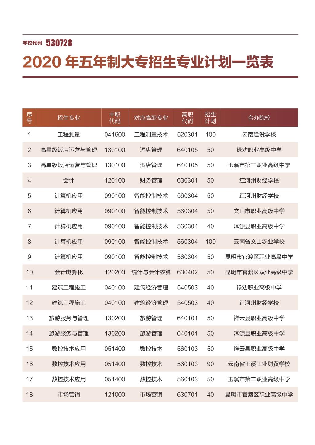 玉溪農(nóng)業(yè)職業(yè)技術(shù)學(xué)院2020年五年制??普猩?jì)劃預(yù)報(bào)表