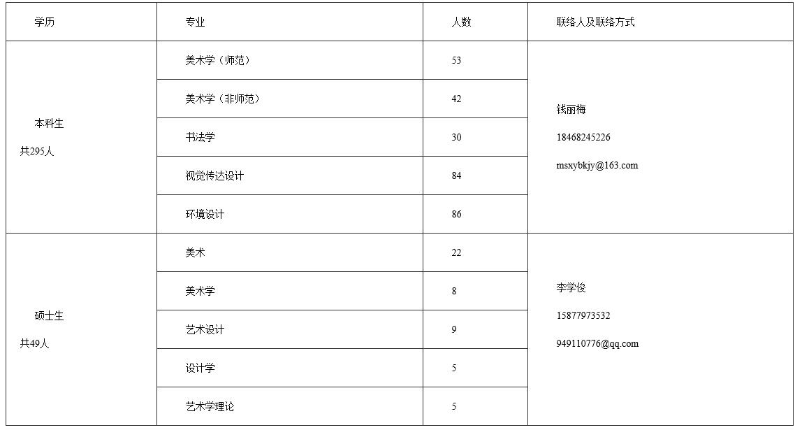 為進(jìn)一步貫徹落實(shí)好國家、云南省關(guān)于2020屆大學(xué)畢業(yè)生在疫情防控期間就業(yè)工作的有關(guān)要求,更好地加強(qiáng)與廣大用人單位的聯(lián)系和合作,溝通雙方供需信息,滿足用人單位的人才需求及廣大畢業(yè)生的求職愿望。根據(jù)學(xué)校疫情防控工作實(shí)際,云南師范大學(xué)美術(shù)學(xué)院將舉辦“2020屆美術(shù)與設(shè)計(jì)類畢業(yè)生網(wǎng)絡(luò)招聘活動(dòng)”。屆時(shí)歡迎貴單位前來招聘選錄畢業(yè)生,我們將竭誠為您服務(wù),現(xiàn)將相關(guān)事項(xiàng)說明如下: