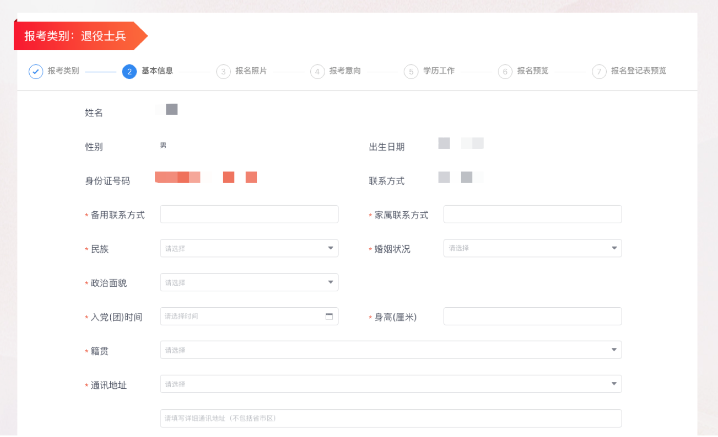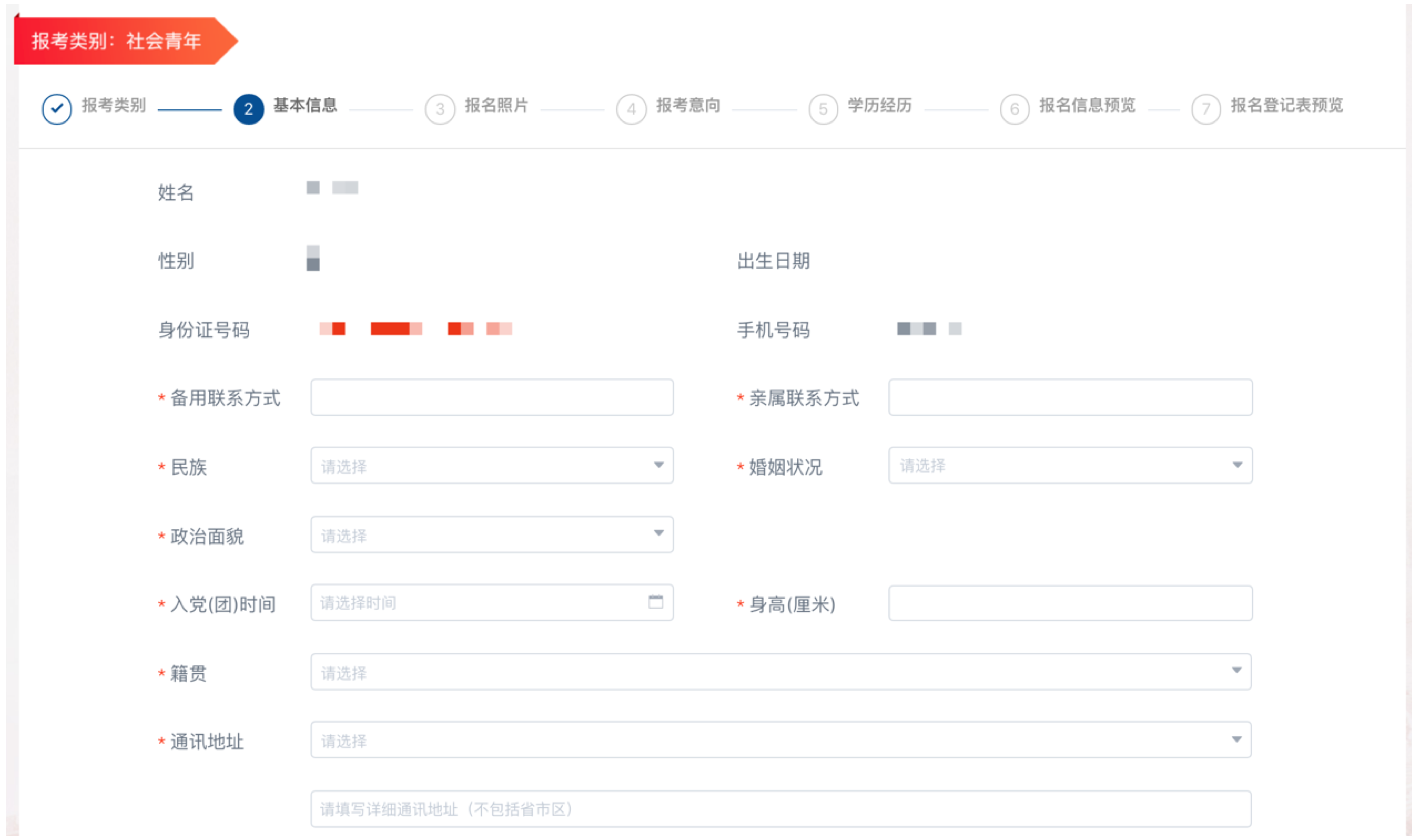 圖8 社會青年、高校應屆畢業(yè)生及原公安消防部隊解約定向培養(yǎng)士官基本信息填報頁