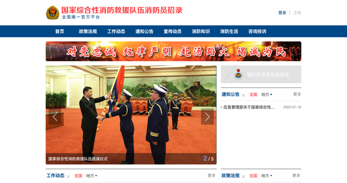 招錄對象可在2020年7月20日23時后、9月30日18時前登錄國家綜合性消防救援隊伍消防員招錄平臺(http://xfyzl.119.gov.cn,以下簡稱“官方平臺”),查詢?yōu)g覽招錄信息,注冊進入消防員招錄在線報名系統(tǒng)。