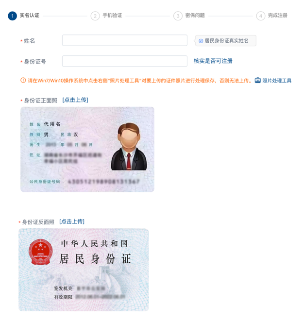 圖1 實名認證信息填寫頁