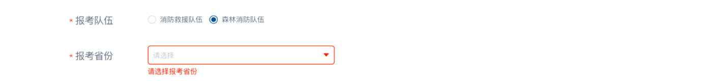 報考隊伍意向:報名對象選擇“消防救援隊伍”或“森林消防隊伍”。