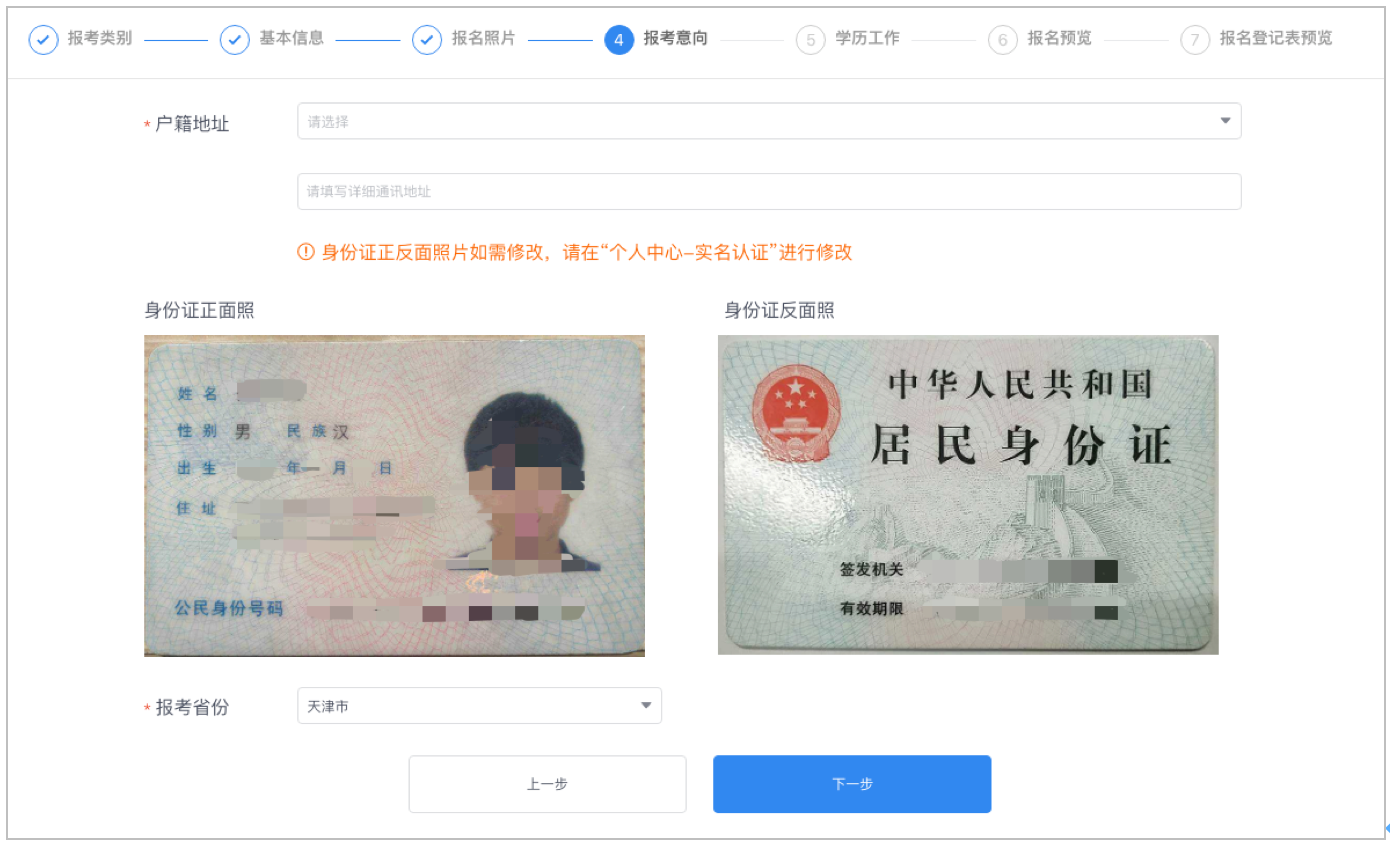② “按常住地報名”需填寫戶籍地地址及常住地地址、上傳居住證正、反面照片,僅限報考常住地省份。