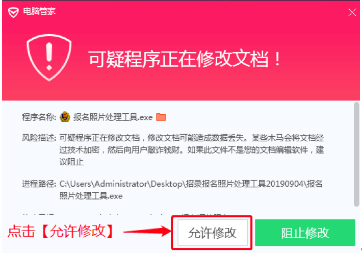 七、如果由于殺毒軟件沒有關(guān)閉,彈出如下提示時(shí),請(qǐng)點(diǎn)擊【允許修改】按鈕。
