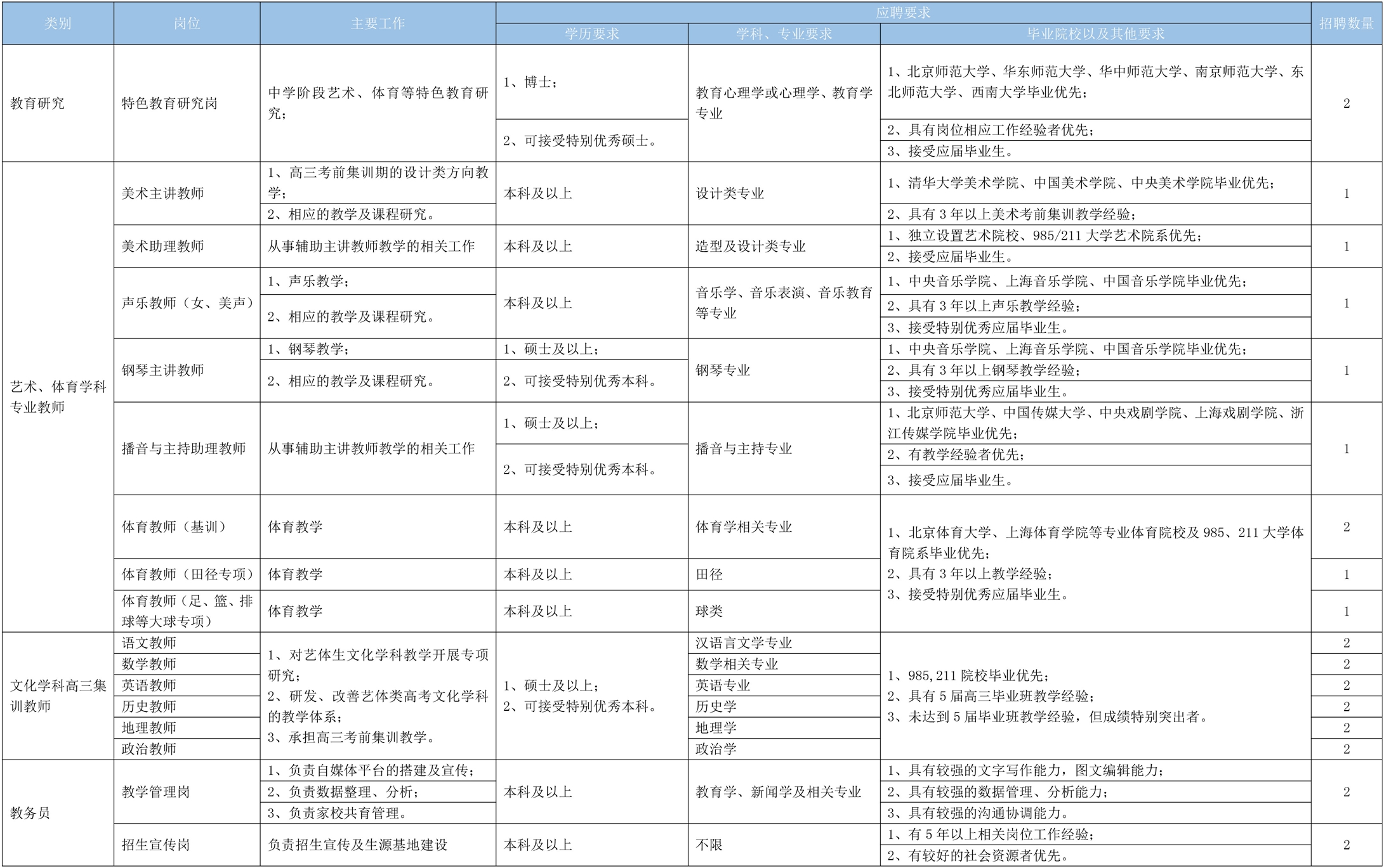 其他招考事宜安排和相關要求詳見各分校招聘簡章(附后)。