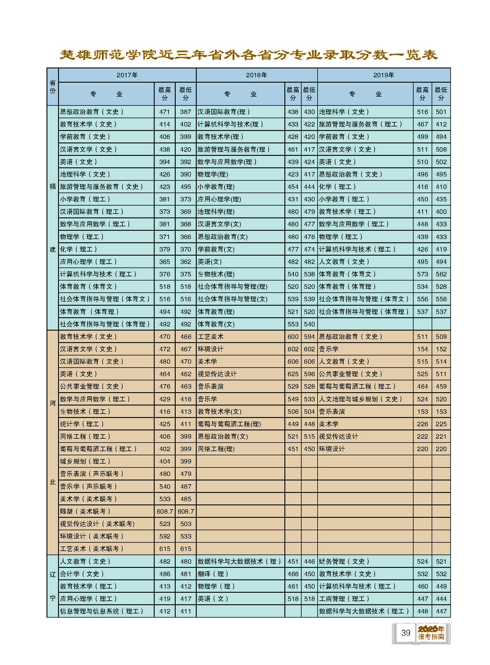 楚雄師范學(xué)院2017年-2019年年省外各省分專業(yè)錄取分?jǐn)?shù)一覽表