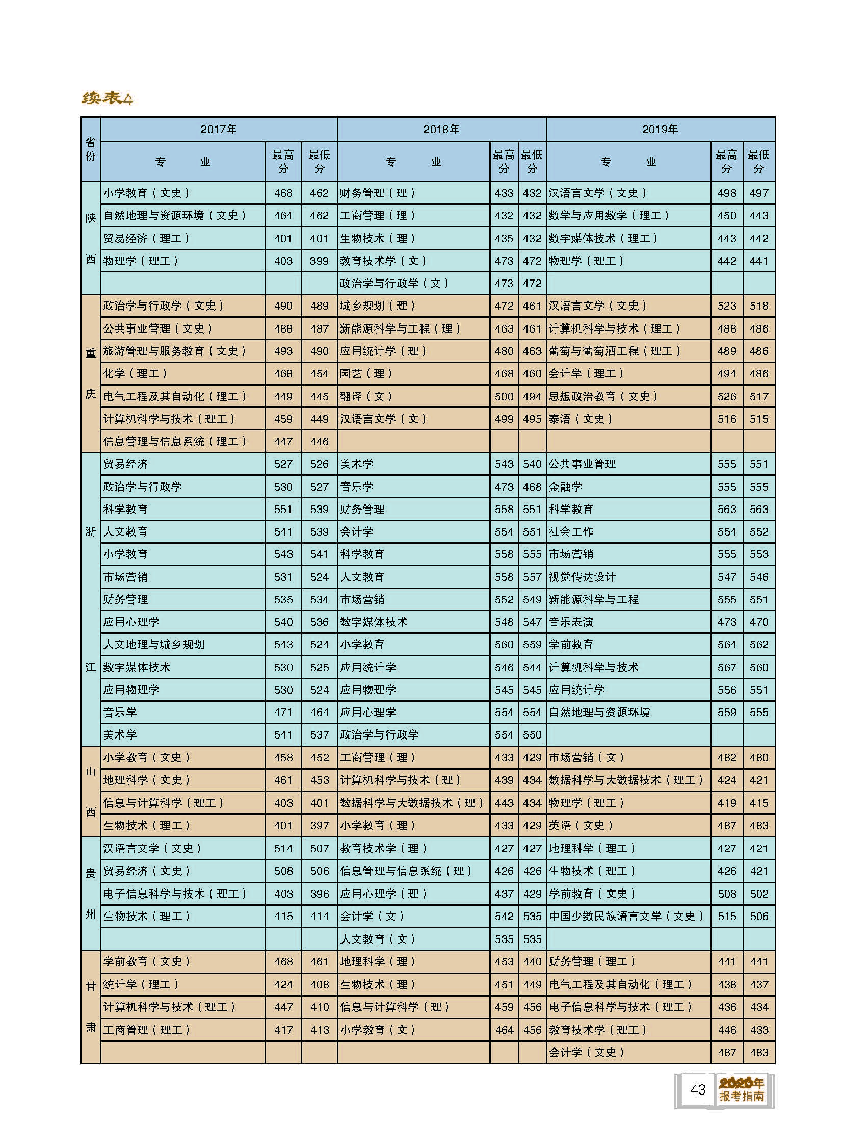 楚雄師范學(xué)院2017年-2019年省內(nèi)分專業(yè)錄取分?jǐn)?shù)一覽表