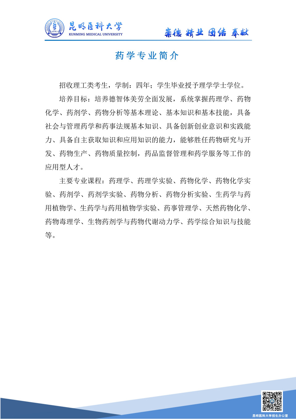 昆明醫(yī)科大學(xué)2020年招生專業(yè)介紹--臨床藥學(xué)