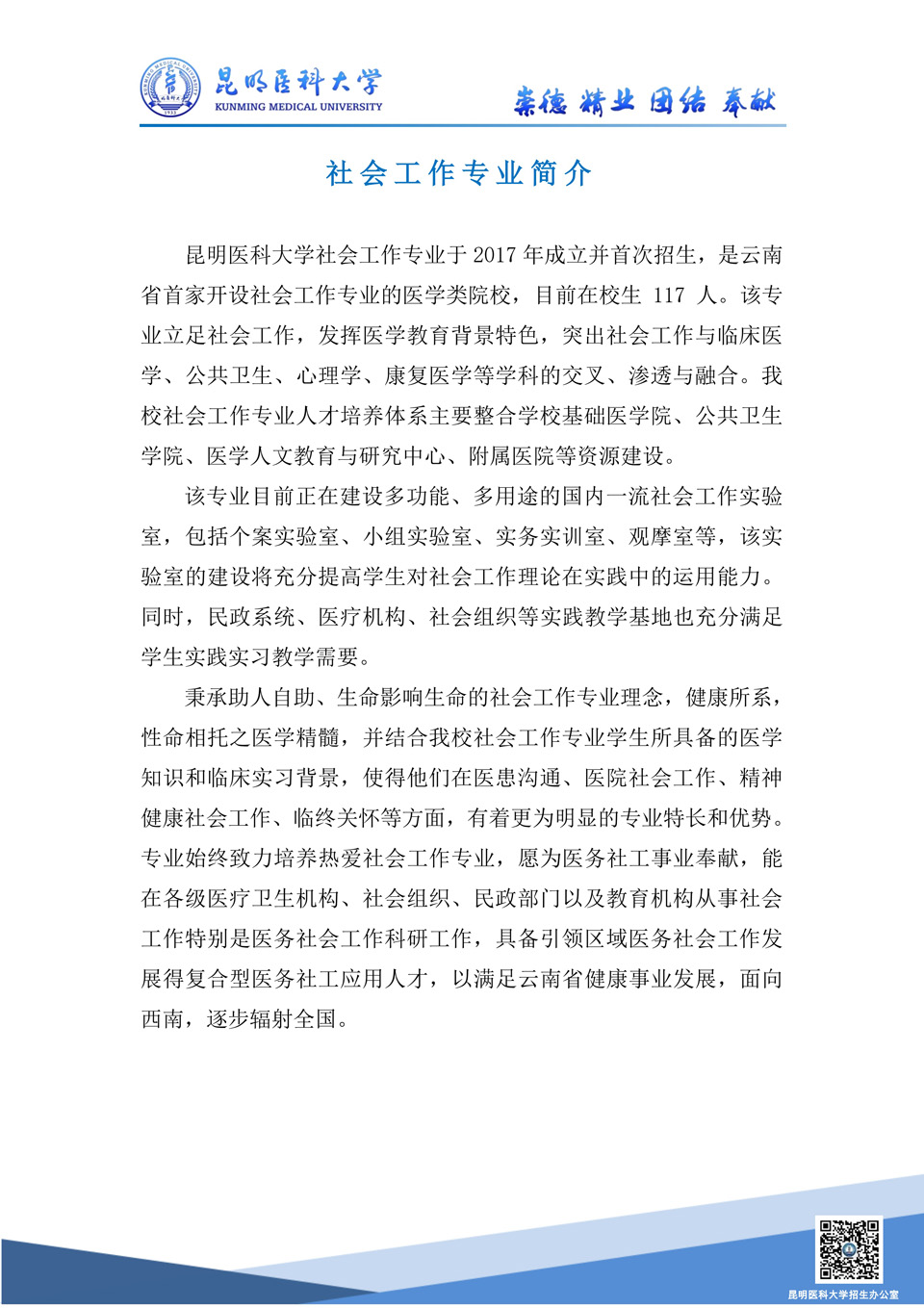 昆明醫(yī)科大學2020年招生專業(yè)介紹--社會工作