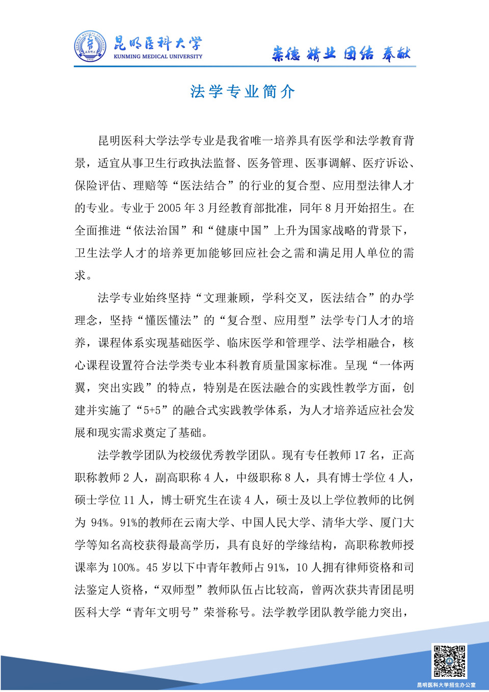 昆明醫(yī)科大學(xué)2020年招生專業(yè)介紹--法學(xué)