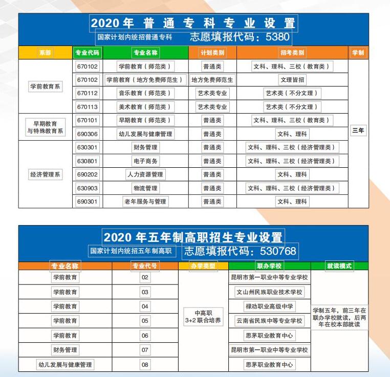 昆明幼兒師范高等??茖W校2020年招生專業(yè)