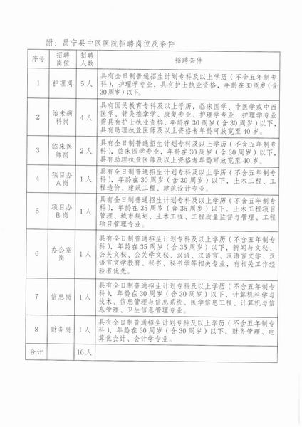 昌寧縣中醫(yī)醫(yī)院2020年編外合同制人員招聘公告