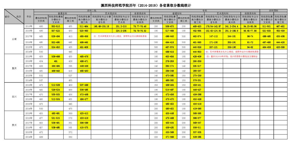 滇西科技師范學(xué)院歷年(2014-2019)分省、類別、專業(yè)錄取分?jǐn)?shù)線統(tǒng)計(高清PDF點(diǎn)此下載)