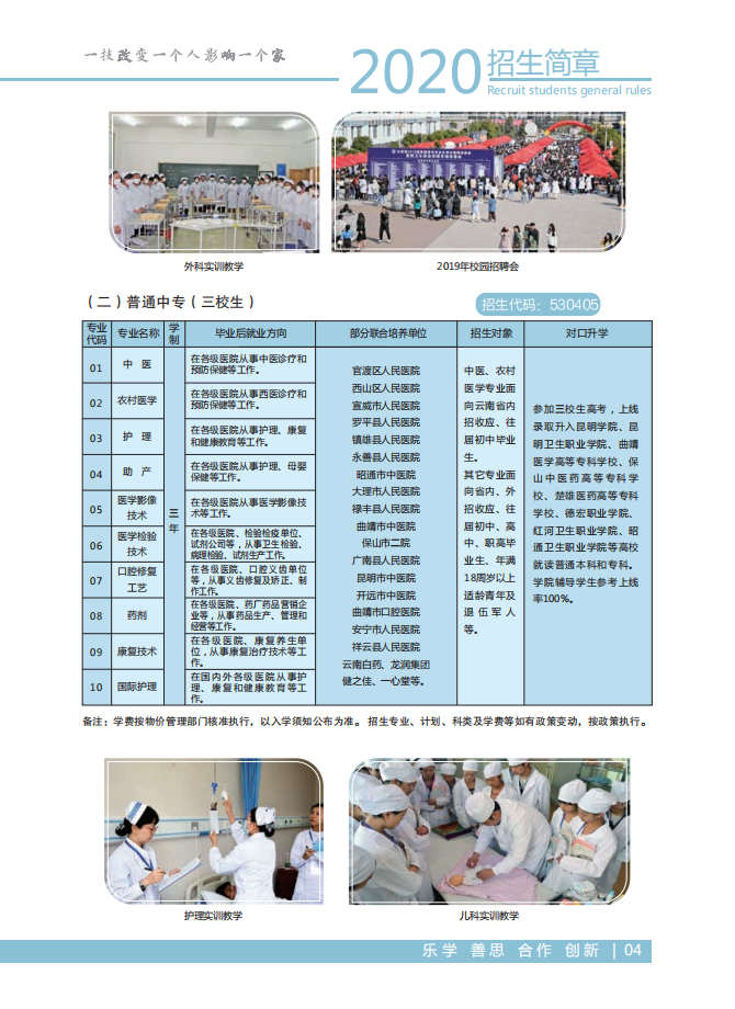 昆明衛(wèi)生職業(yè)學(xué)院2020年五年制招生簡(jiǎn)章
