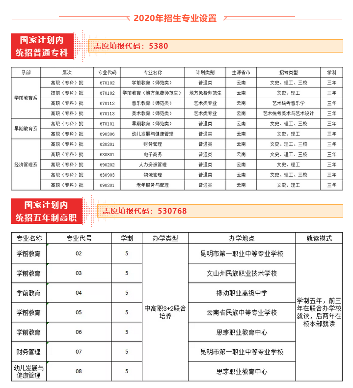 昆明幼兒師范高等??茖W校2020年招生專業(yè)設(shè)置