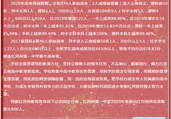 第一志愿填報(bào)紅河州第一中學(xué),確保錄取。