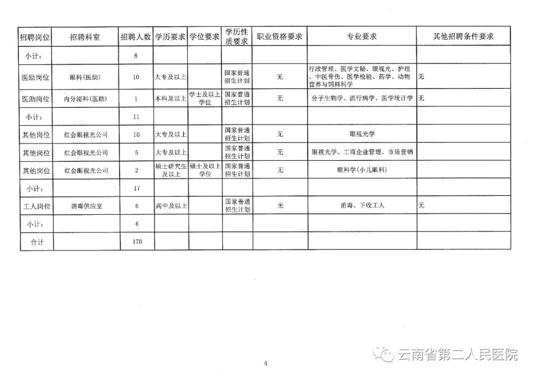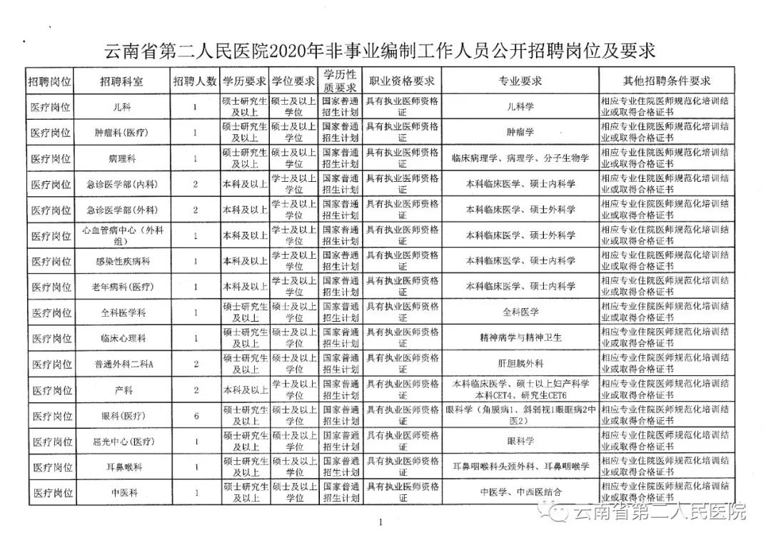 (一)云南省第二人民醫(yī)院2020年非事業(yè)編制工作人員公開招聘崗位及要求
