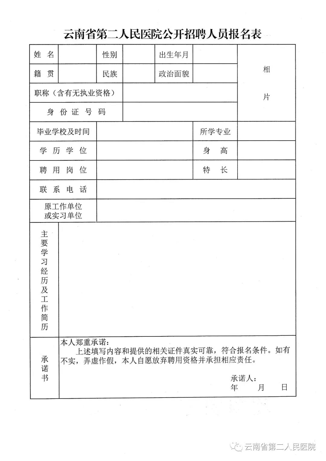 (二)云南省第二人民醫(yī)院公開招聘人員報(bào)名表