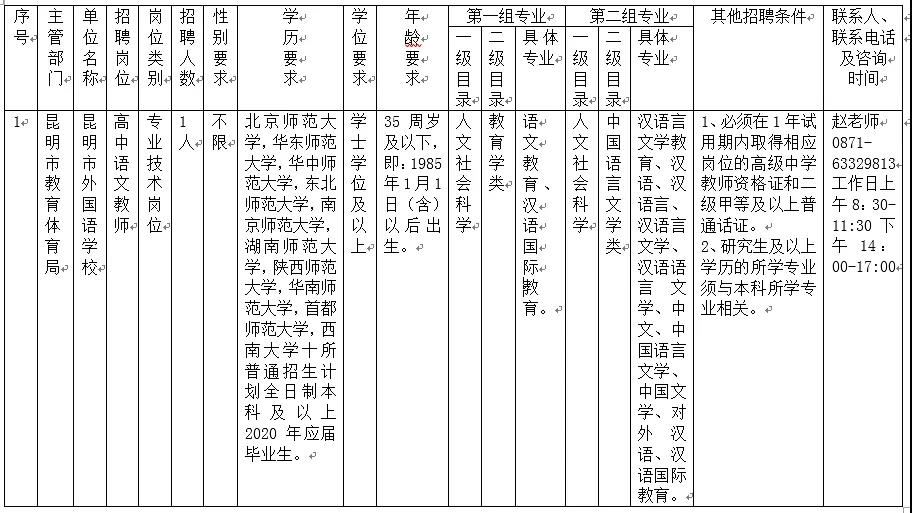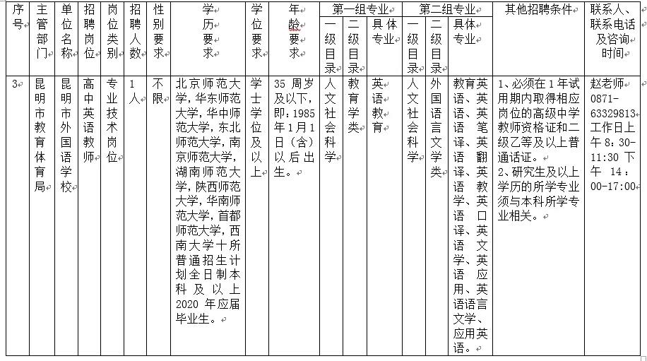 昆明市外國(guó)語(yǔ)學(xué)校2020年教師專項(xiàng)培養(yǎng)計(jì)劃招聘公告
