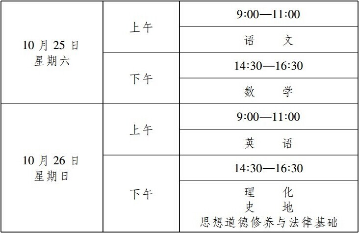 (三)高中起點(diǎn)升本、專(zhuān)科考試時(shí)間
