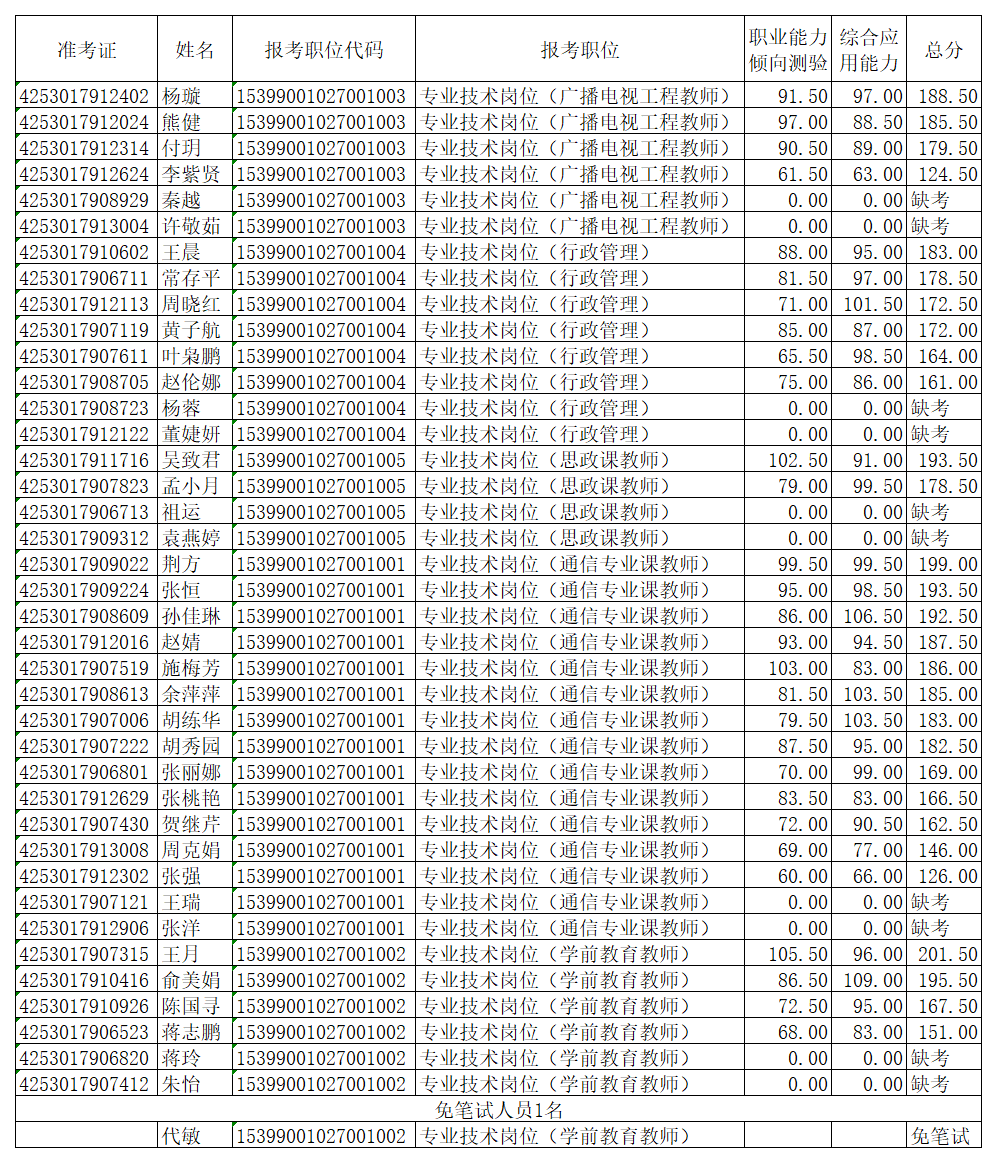 云南省廣播電視學(xué)校2020年事業(yè)單位招聘筆試成績(jī)公示