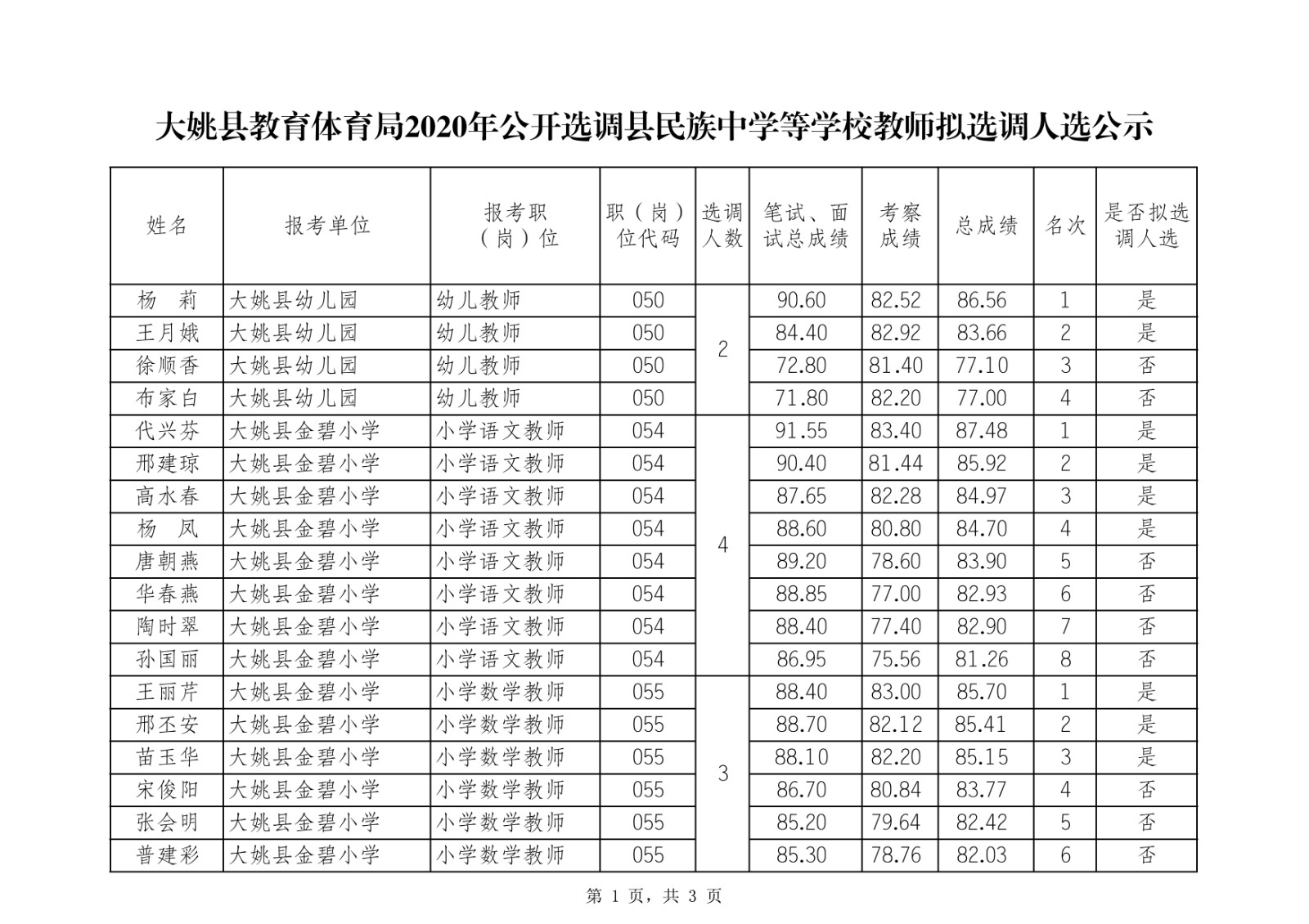 大姚縣教育體育局2020年公開(kāi)選調(diào)縣民族中學(xué)等學(xué)校教師擬選調(diào)人選公示