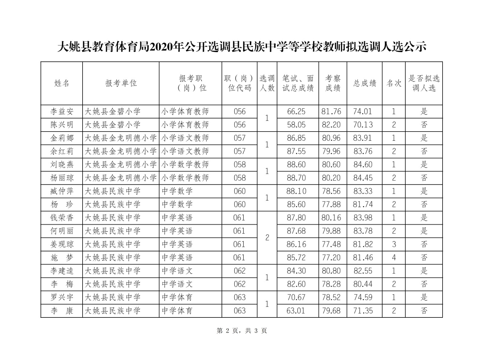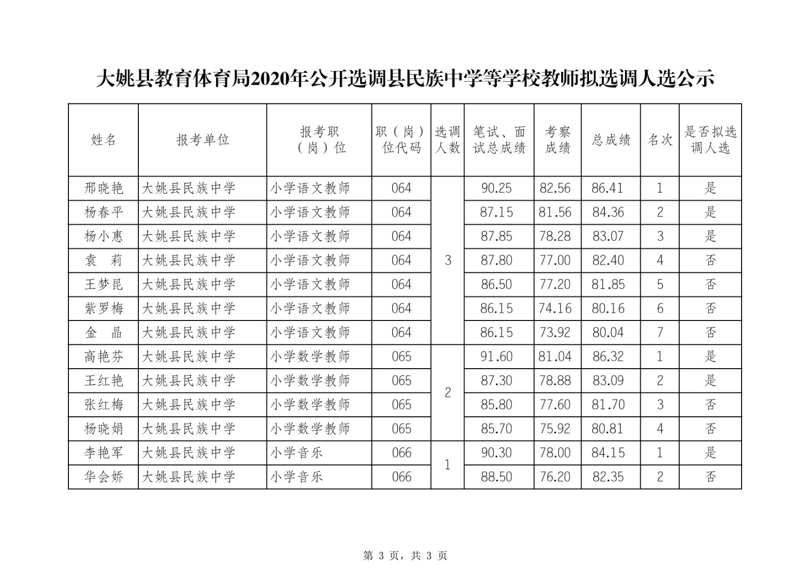 附件:大姚縣教育體育局2020年公開(kāi)選調(diào)縣民族中學(xué)等學(xué)校教師擬選調(diào)人選公示