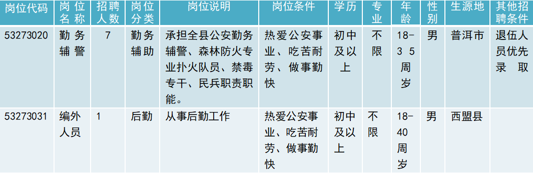 西盟縣公安局2020年度公開(kāi)招聘勤務(wù)輔警、編外人員公告