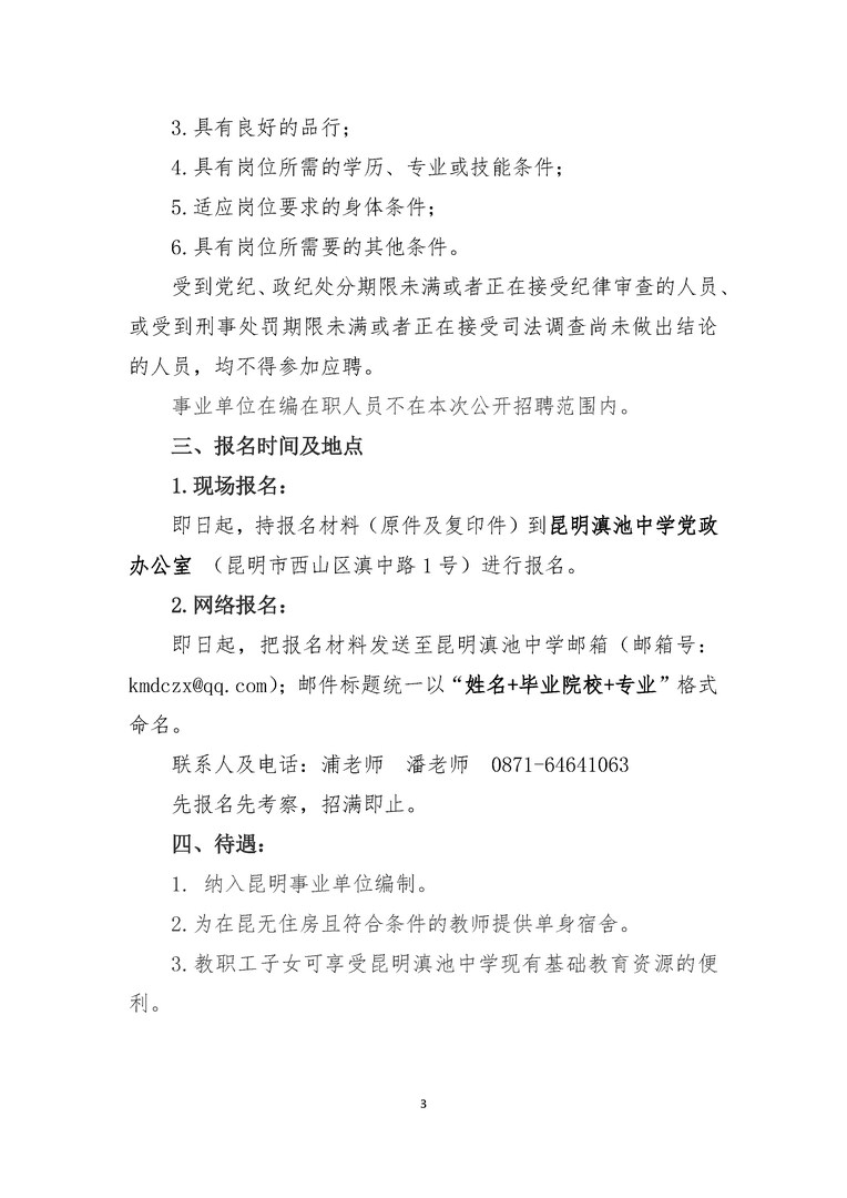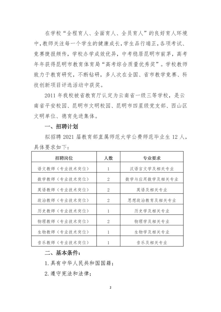 昆明滇池中學(xué)招聘2021屆公費師范畢業(yè)生公告