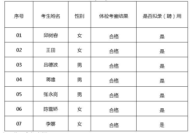 根據(jù)《陸良縣北辰高級(jí)中學(xué)2020年公開招聘教師實(shí)施方案(含招聘計(jì)劃)》之規(guī)定, 2020年8月26日,已組織完成體檢、考察工作,現(xiàn)將體檢、考察結(jié)果及擬錄(聘)用人員予以公示。