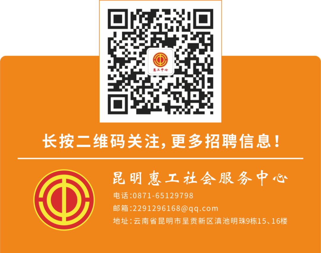本公告最終解釋權(quán)歸昆明惠工社會(huì)服務(wù)中心所有,后續(xù)招聘相關(guān)信息請(qǐng)關(guān)注“惠工中心”微信公眾號(hào)。