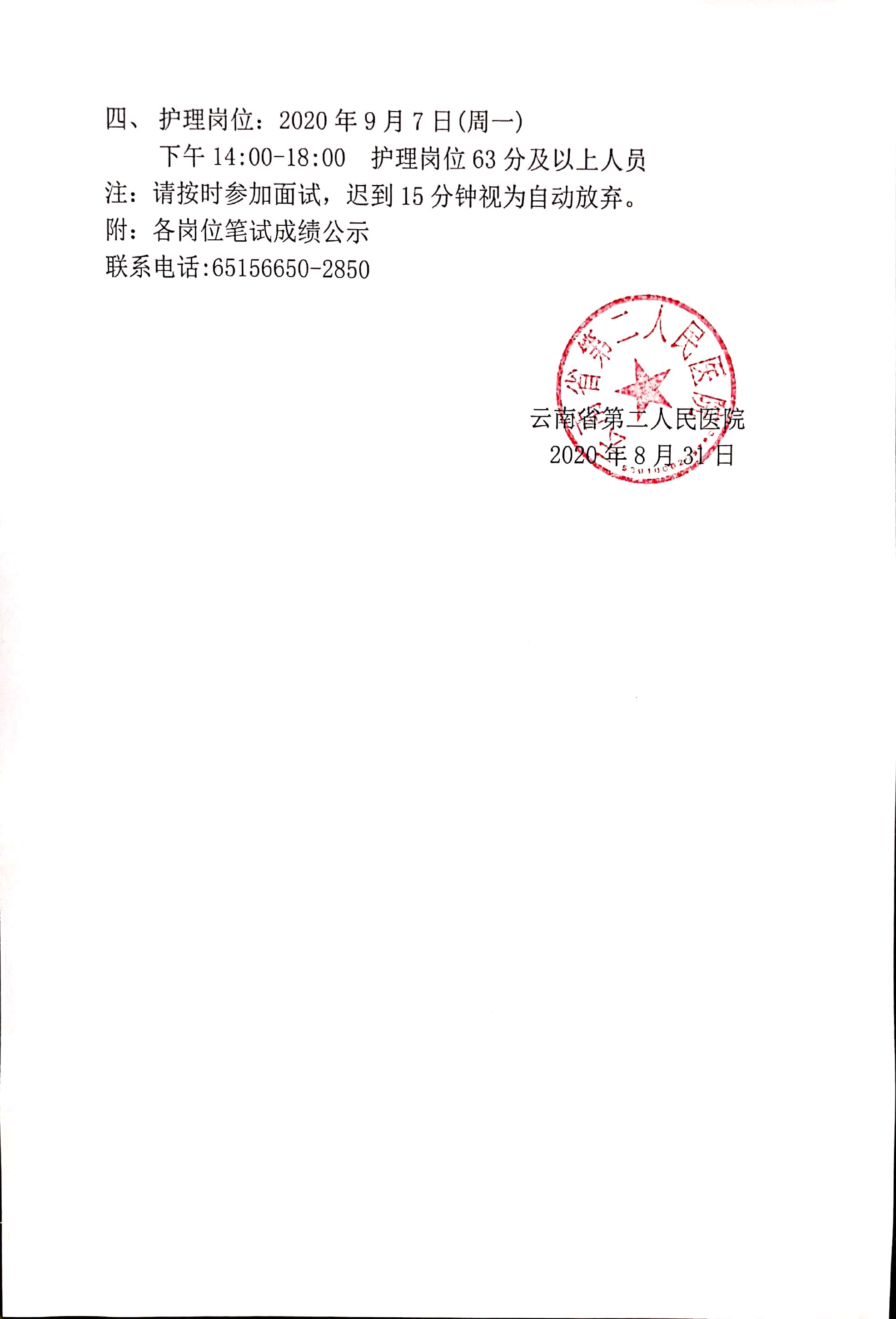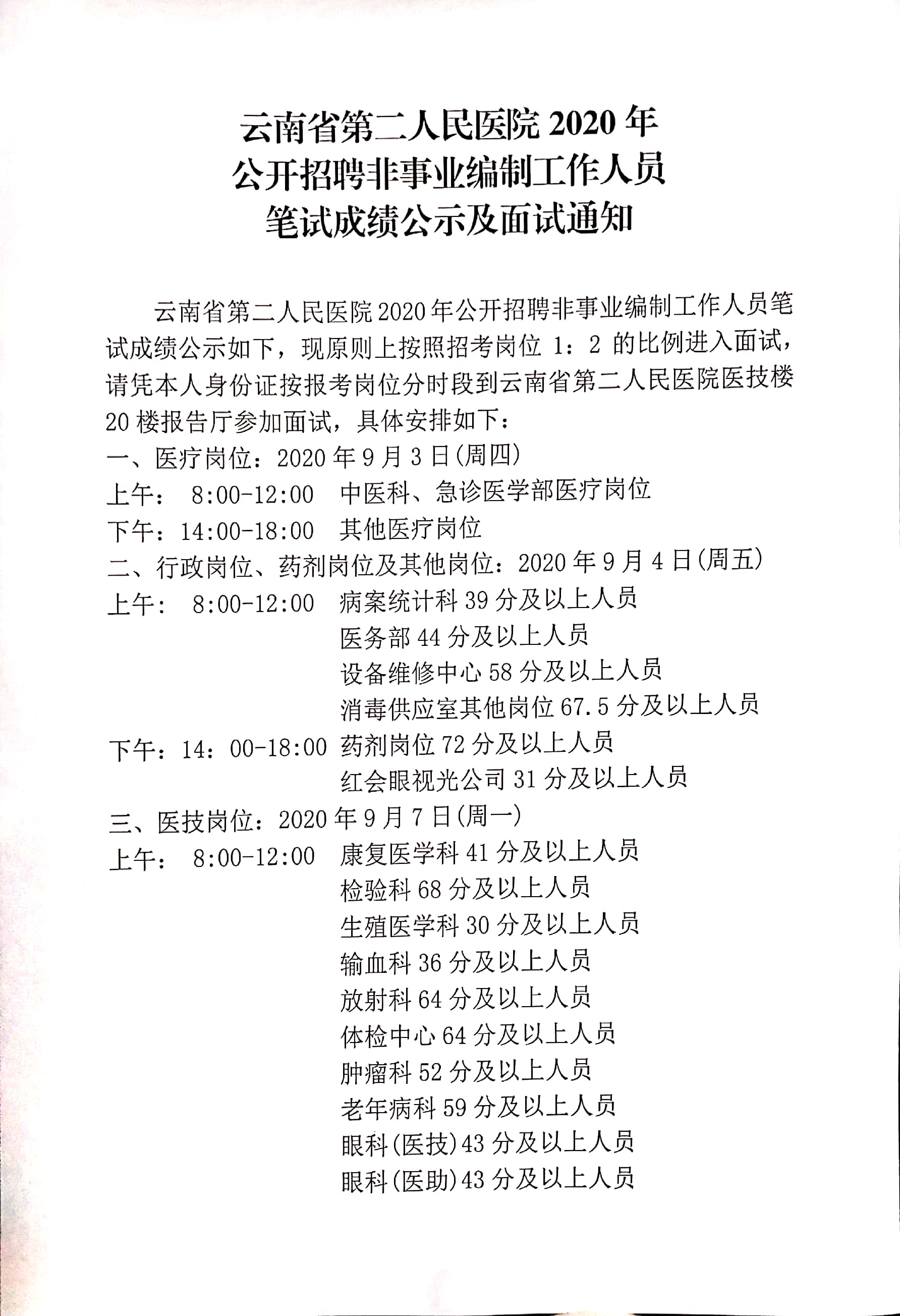 公開招聘非事業(yè)編制工作人員筆試成績(jī)公示及面試通知