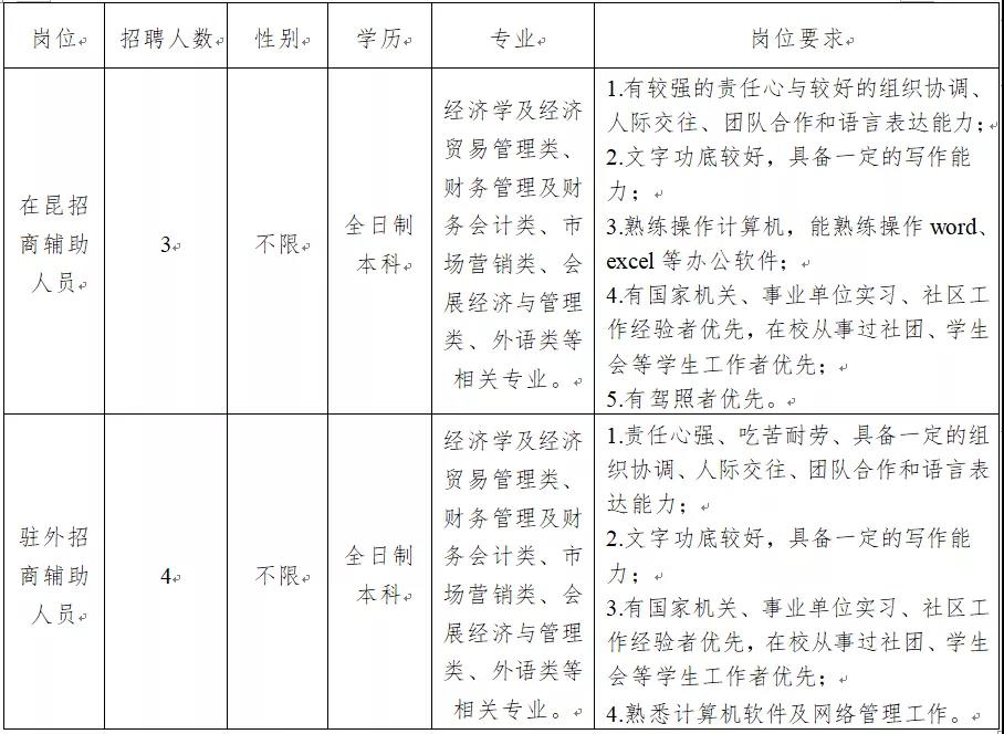 為了進一步加強昆明市招商引資工作,充實昆明市招商引資隊伍,經研究決定,昆明市投資促進局面向社會公開招聘招商引資工作輔助人員,現將有關事項公告如下: