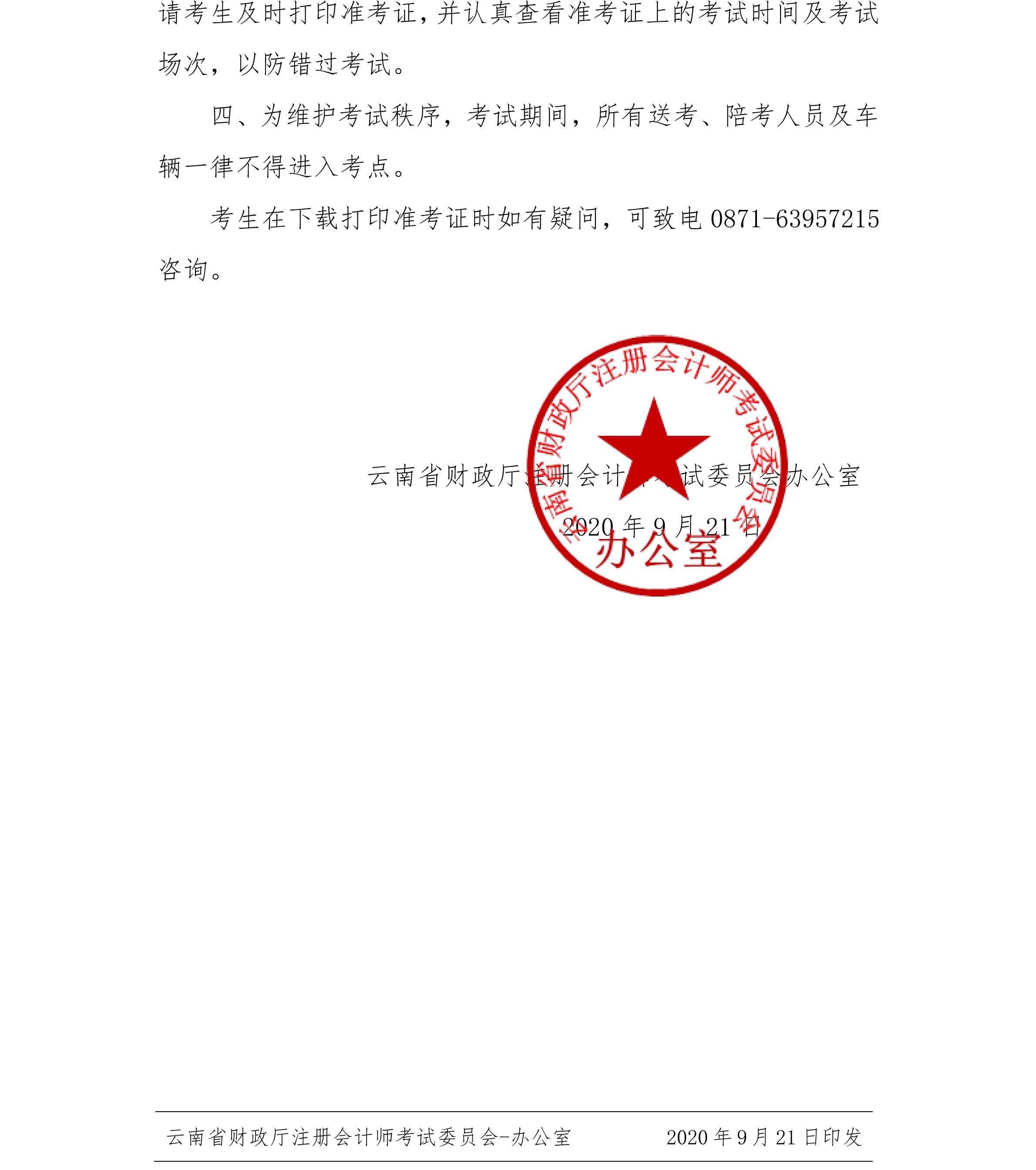 關(guān)于下載打印云南考區(qū)2020年注冊會計師全國統(tǒng)一考試準(zhǔn)考證的公告