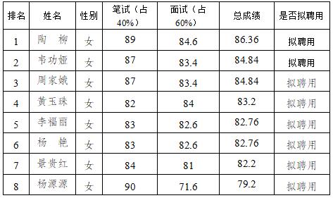 根據(jù)《麻栗坡縣人民醫(yī)院2020年公開招聘編外臨床護理人員招聘簡章》規(guī)定,按照公平、公開、公正、自愿的原則,我院積極組織開展人員招聘工作,經(jīng)過筆試、面試程序,現(xiàn)將考試綜合成績及擬聘用人員公示如下: