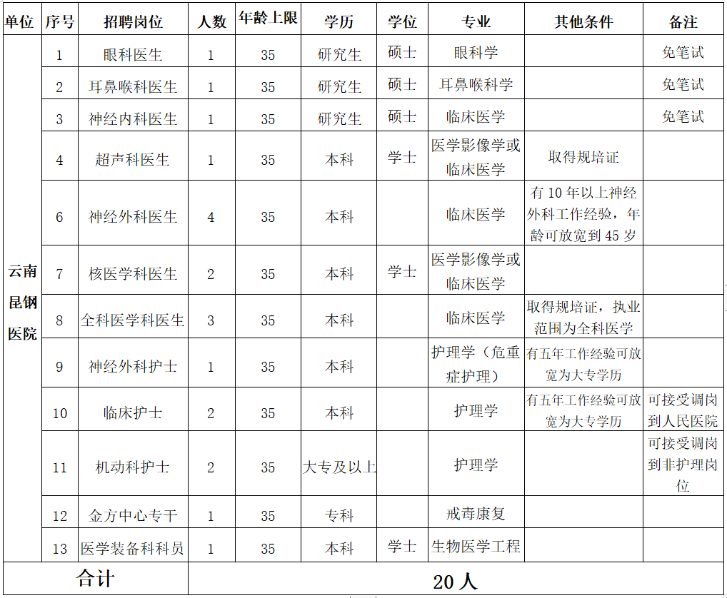 安寧市醫(yī)共體2020年工作人員(非事業(yè)編制) 招聘啟事
