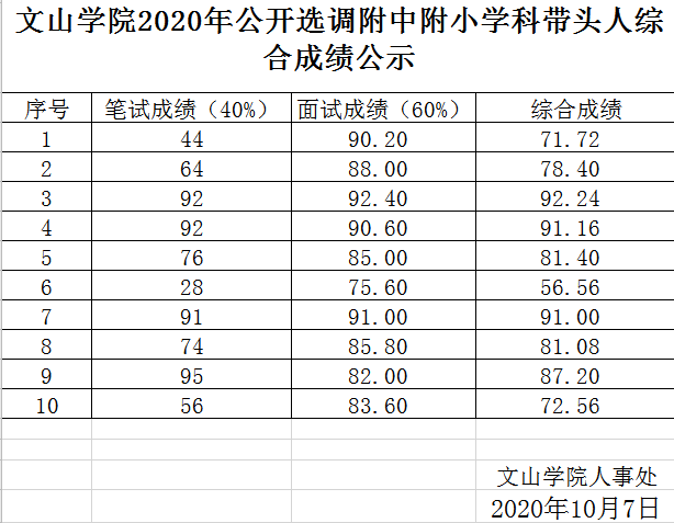 附中附小學(xué)科帶頭人綜合成績(jī)公示