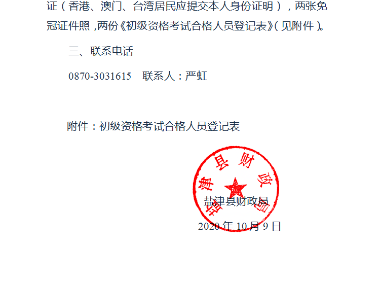 附件:http://www.yjxww.net/uploadfile/2020/1010/20201010033559626.docx初級資格考試合格人員登記表.docx
